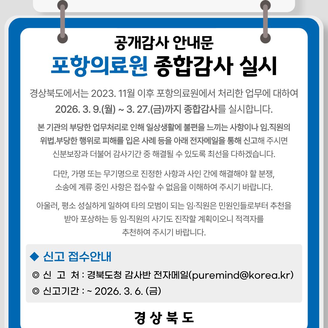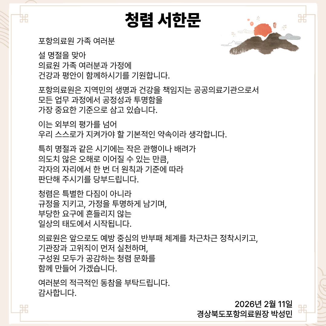 * 경상북도포항의료원은 국가보훈 위탁 의료기관입니다.